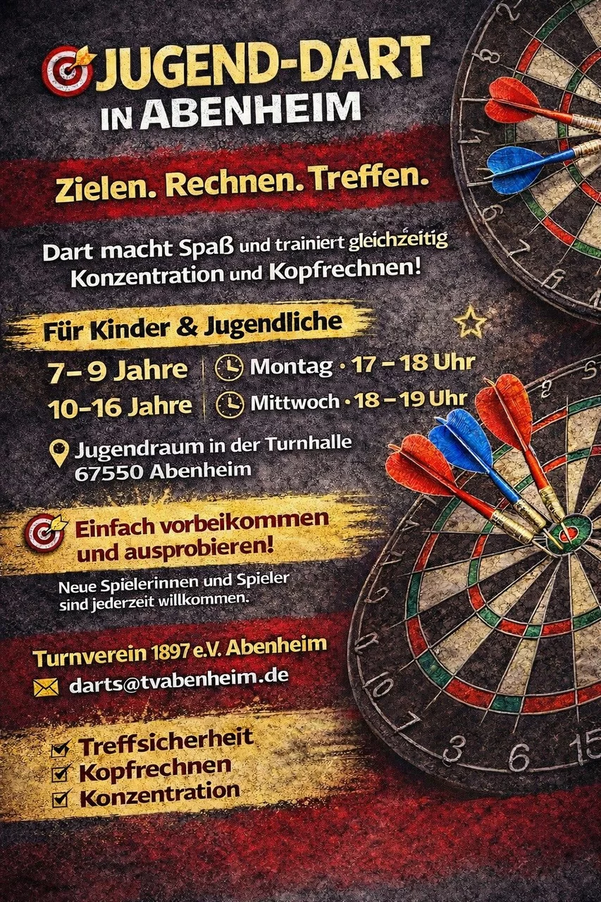 Am vergangenen Wochenende fanden in unserer Schulturnhalle die diesjährigen Vereinsmeisterschaften und unser -interner- Turnkükenwettkampf statt. Los ging's am Freitag Nachmittag mit unseren Jungs. Samstag morgens gleich in der Frühe waren die Mädels am Start. direkt im Anschluss hieß es, mit vereinten Kräften umbauen für den anschließend folgenden Turnkükenwettkampf. Sonntags gab es dann eine Premiere. Erstmals fanden Vereinsmeisterschaften im Darts statt. Lesen Sie den vollständigen Bericht hier.